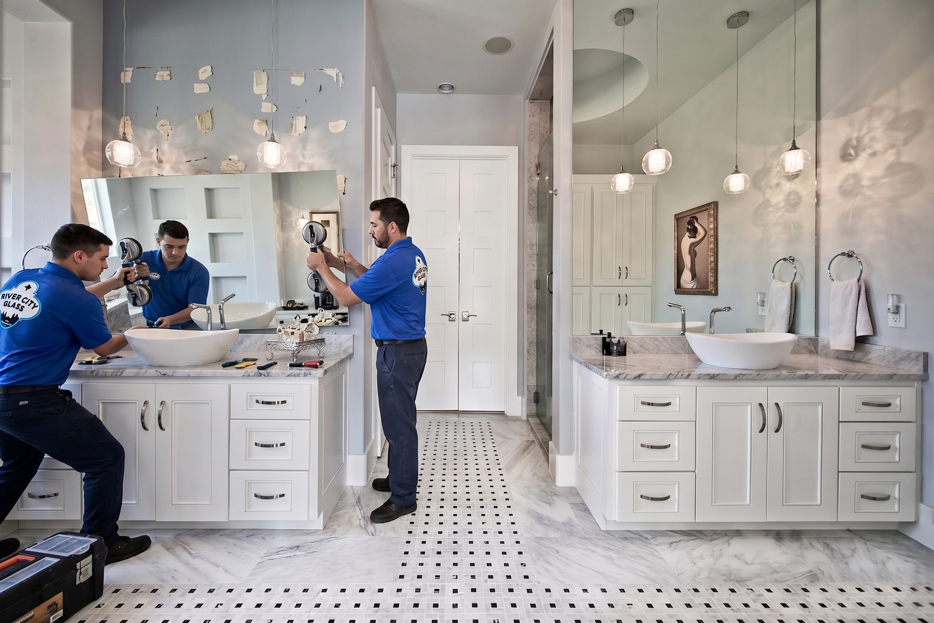 This is why many customers who contact River City Glass & Mirror for removal also move directly into our professional River City Glass & Mirror mirror installation process once the old builder mirror is gone.